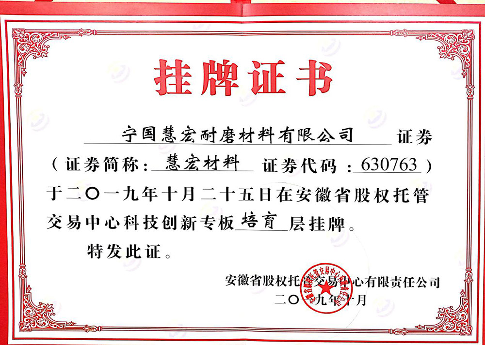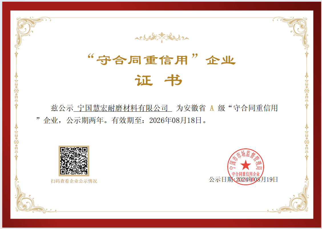 可靠的設(shè)備,才能長久穩(wěn)定運行全面推行ISO9001;2000版質(zhì)量管理體系標準,秉承“科學(xué)管理、精心制造、優(yōu)質(zhì)服務(wù)、追求卓越”的質(zhì)量方針,不斷打造高端耐磨材料產(chǎn)品。